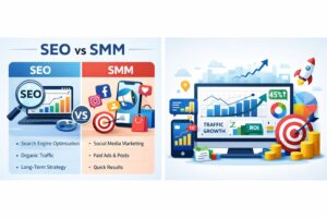 Introduction When starting digital marketing after building a website, this is the biggest confusion most business owners face: SEO or SMM — which one is better for website growth?   Choosing the wrong strategy can result in a complete waste of time, money, and effort.   In this blog, we will practically compare SEO (Search Engine Optimization) and SMM (Social Media Marketing) and clearly explain which strategy is the right fit for your website.